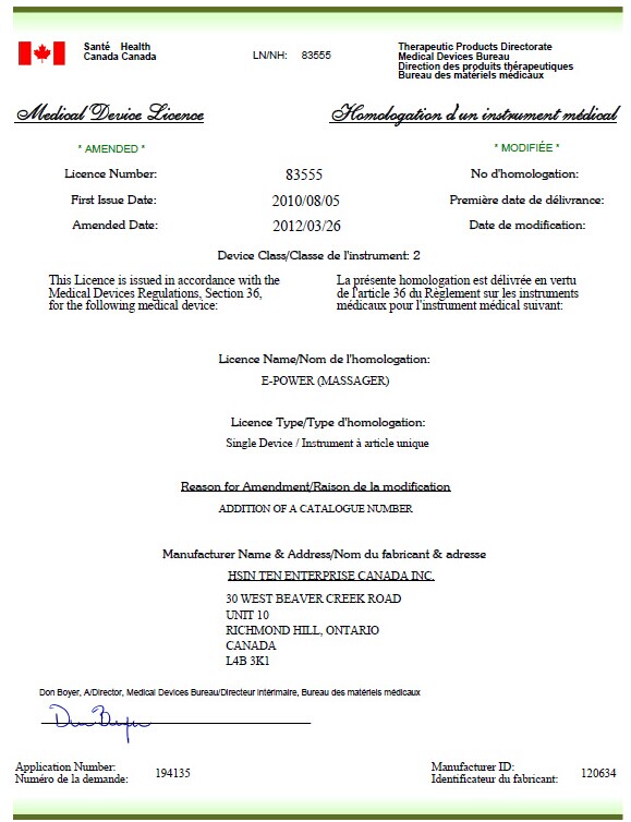 加拿大E-power醫療器械認證